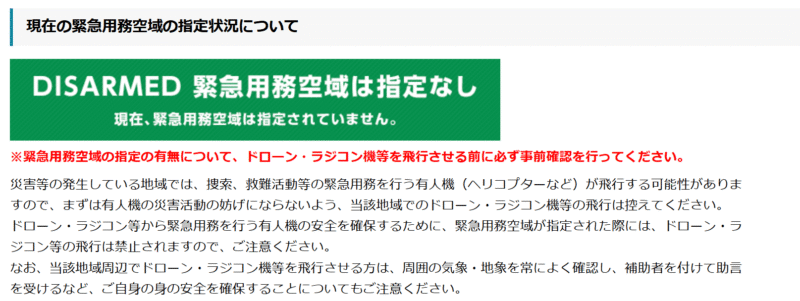注意点:「DISARMED 緊急用務空域」は災害対応時用で混同に注意