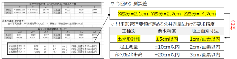 - 正しく計画を作成し、撮影ができれば、公共測量における出来形計測の要求精度を満たす。
